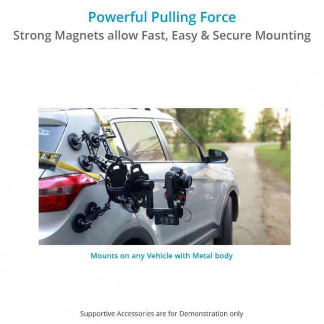 Proaim Grip Master je vybavený 8 výkonnými magnetmi, ktoré zabezpečujú veľmi silný úchop potrebný na prácu s drahým filmovým vybavením. Táto inteligentná, spoľahlivá a robustná konštrukcia, vyrobená s použitím vysokokvalitných hliníkových zliatin, je schopná udržať 15 kg/33 lb užitočného zaťaženia.