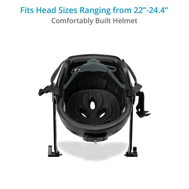 Helma je navržena tak, aby se hodila na velikosti hlavy od 22 do 24,4 palců, a je vybavena ráčnovým páskem, který umožňuje další nastavení helmy na hlavě.
