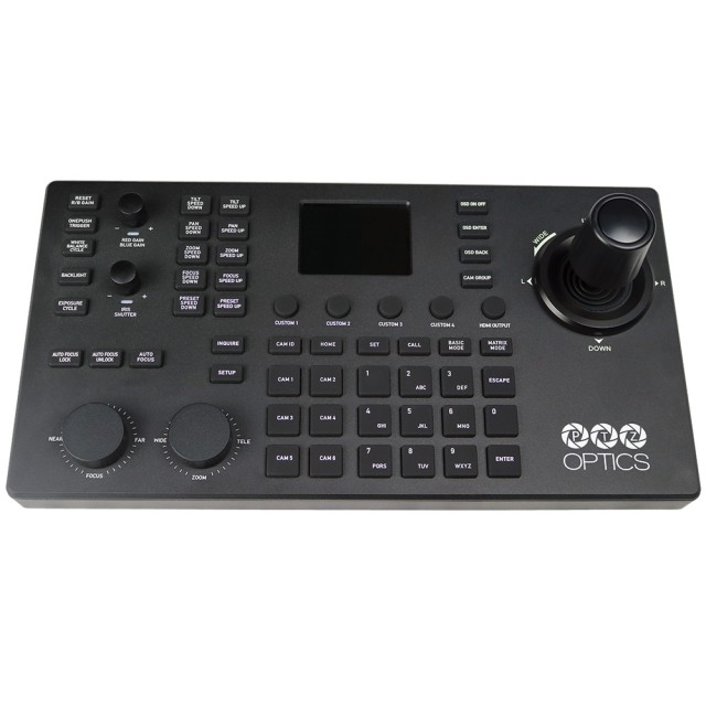 The PTZOptics SuperJoy Joystick Controller is a comprehensive solution supporting mix-and-match serial and network-based control for PTZ cameras of any generation.