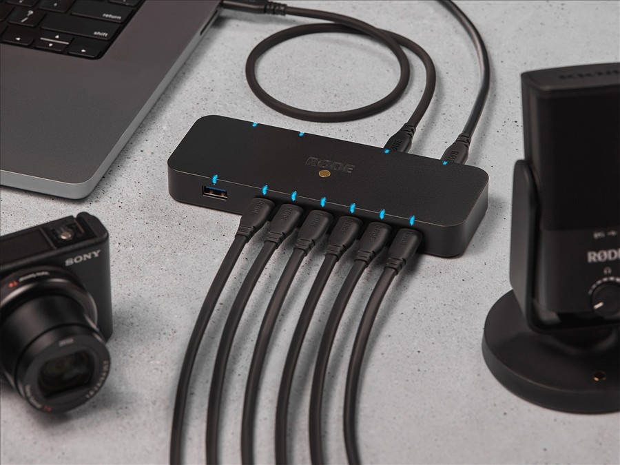 RODE Hub je USB hub se sedmi USB porty určený pro tvůrce obsahu i profesionály vyžadující rychlý a spolehlivý přenos dat i napájení. S možností připojení až sedmi zařízení najednou umožňuje pohodlnou správu periferií včetně kamer, mikrofonů a externích disků.