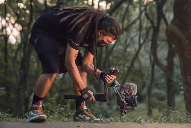 Zadní ovládací rukojeť umožňuje pohodlnější pořizování záběrů pod nízkým úhlem a poskytuje větší kontrolu než standardní režim kufříku.