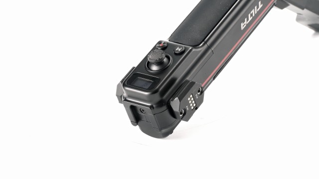 Joystick na zadní ovládací rukojeti vám poskytuje plnou kontrolu nad hlavou gimbalu RS 2 a prstové kolečko vám umožňuje ovládat buď bezdrátový zaostřovací motor DJI, nebo Tilta Nucleus M a Nano.