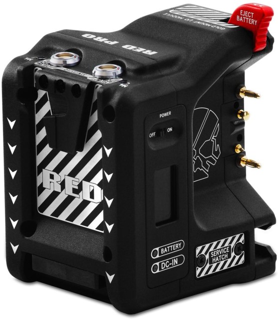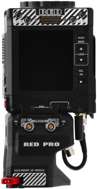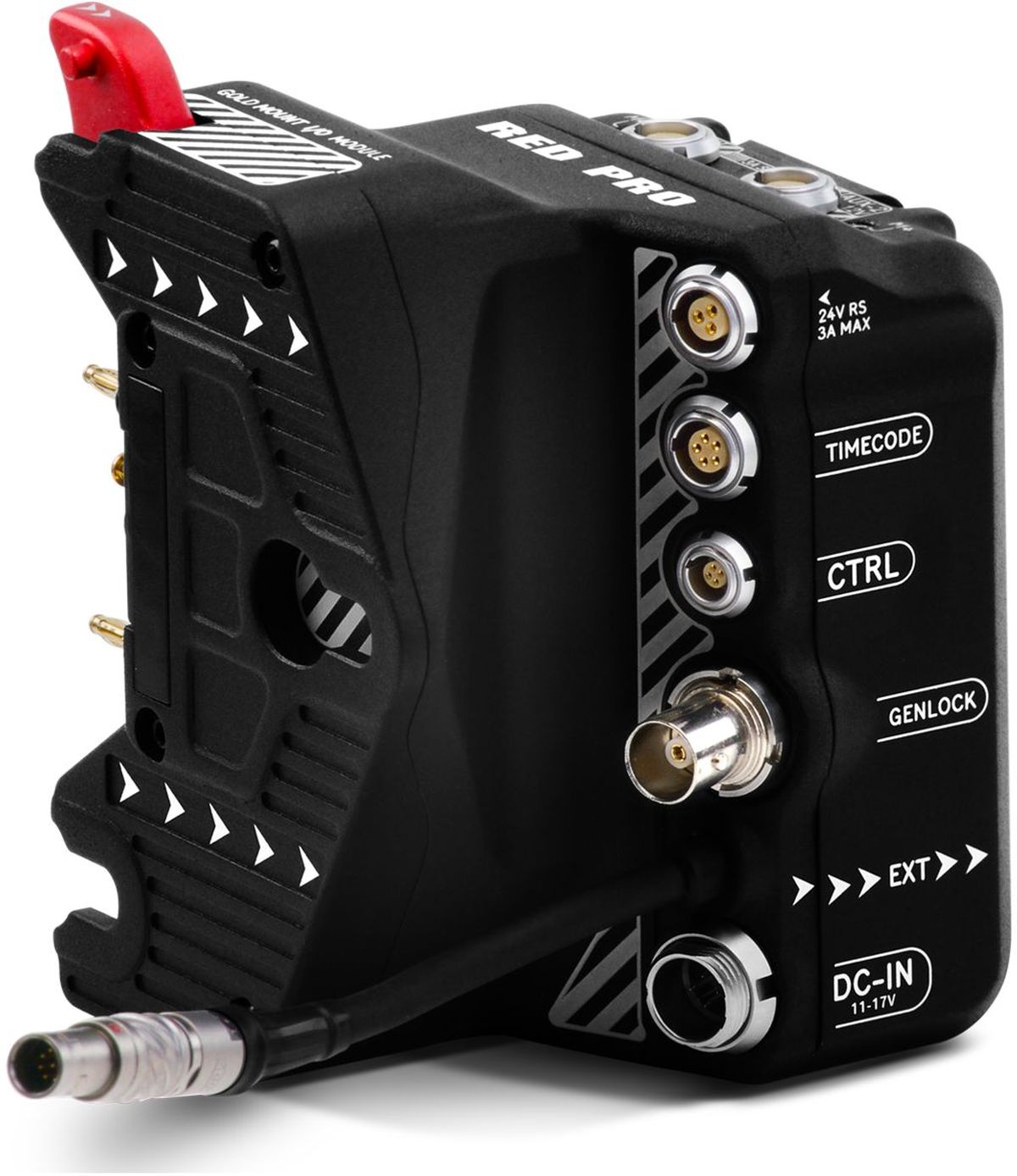 Doplňkový modul RED Pro I/O Gold Mount Module rozšiřuje vstupy/výstupy kamer RED Komodo-X a RED V-Raptor a také je doplňuje o kompatibilitu se standardními bateriemi typu Gold Mount. Modul se připojuje přímo k destičce Micro V-Lock na zadní straně kamery a portu 9-Pin Ext Port a nabízí následující: