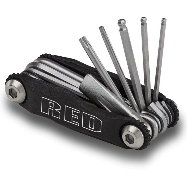 Kapesní nářadí pro kamery řady DSMC. Zvládne i velice nevlídné zacházení díky robustnímu, vysokým teplotám odolnému pouzdru a nářadí z kvalitní niklované uhlíkaté oceli. Pouzdro obsahuje šablony závitů pro snadné vybrání správného nástroje. Obsahuje následující nástroje: SAE hex: 1/8", 5/32", 3/16", metrický hex: M2.5, M3, torx: T6, T8, T10, T20, plochý šroubovák a šroubovák Phillips #1. Při objednávce 12 a více kusů gravírování pouzdra laserem zdarma (nutné objednat variantu „RED SIDEWINDER (Custom)”).