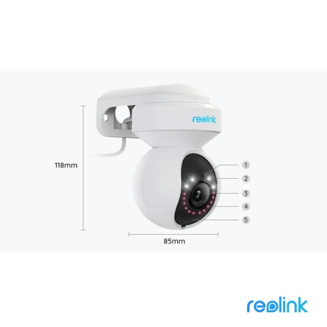 4K 8MP PTZ PoE kamera s automatickým sledováním a inteligentní detekcí. Reolink E1 Outdoor PoE je kompaktní bezpečnostní kamera odolná proti povětrnostním vlivům určená pro venkovní použití. Je vybavena napájením přes Ethernet (PoE) pro snadnou instalaci pomocí jediného kabelu, 5MP rozlišením Super HD, funkcí otáčení a naklápění pro široké pokrytí, nočním viděním a inteligentní detekcí pohybu s upozorněním na osoby a vozidla. Kamera také podporuje obousměrný zvuk, vzdálený přístup prostřednictvím aplikace Reolink a je kompatibilní se systémy NVR i s paměťovými kartami microSD.
