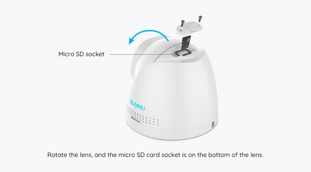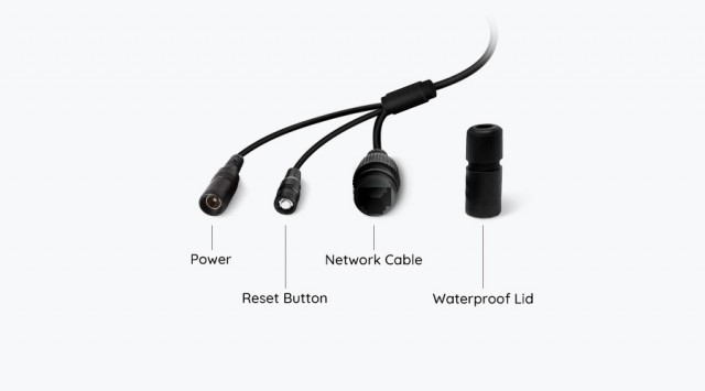 - Konektor RJ45 10M/100Mb/s - Napájení - Slot pro kartu Micro SD - Vestavěný mikrofon - Tlačítko Resetovat
