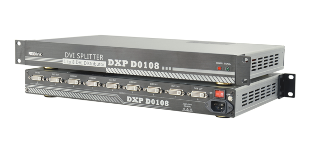 RGBlink DXP D0108 je vysoce výkonný distribuční zesilovač 1-v-8 DVI/HDMI v kompaktním provedení 1RU. Podporuje širokou škálu rozlišení VESA a SMPTE až do 2560×816@60 Hz a je kompatibilní s HDCP. Spolehlivě distribuuje jeden video zdroj na více displejů pro profesionální AV, vysílání a prezentační aplikace.