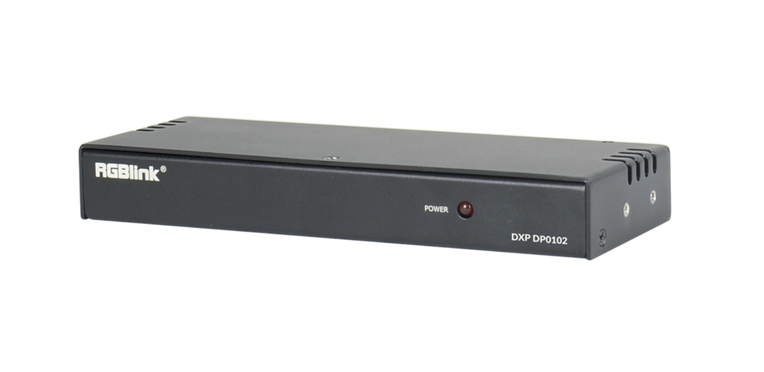 RGBlink DXP DP0102 je profesionální rozbočovač videa DisplayPort 1-in-2-out navržený pro spolehlivou distribuci signálu ve vysokém rozlišení v náročných AV prostředích. Umožňuje duplikovat jeden zdroj DisplayPort 1.2 na dva výstupy DisplayPort při zachování plné věrnosti obrazu, což jej činí vhodným pro řídicí místnosti, prezentační systémy, digitální značení a vysílací aplikace.