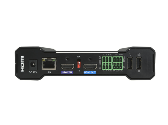 Porty USB-A a konektivita RS232 umožňují dálkové ovládání klávesnic, myší a sériových zařízení, zatímco přenos založený na IP umožňuje připojení na dlouhé vzdálenosti pomocí standardní síťové infrastruktury. Díky kompaktnímu a odolnému designu (160 × 128 × 37,1 mm, 0,4 kg) je ideální pro firemní, vzdělávací nebo vysílací instalace, které vyžadují centralizované ovládání a flexibilní distribuci videa.