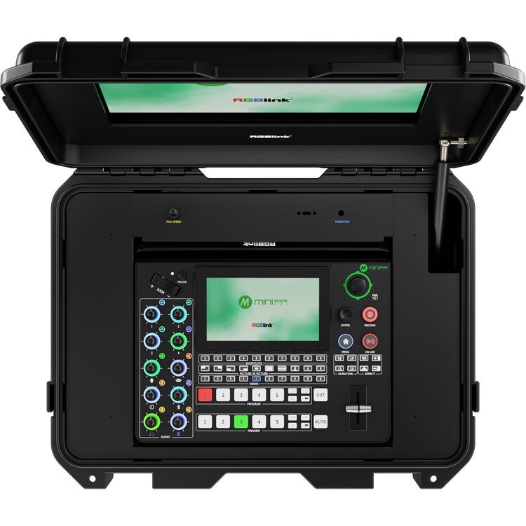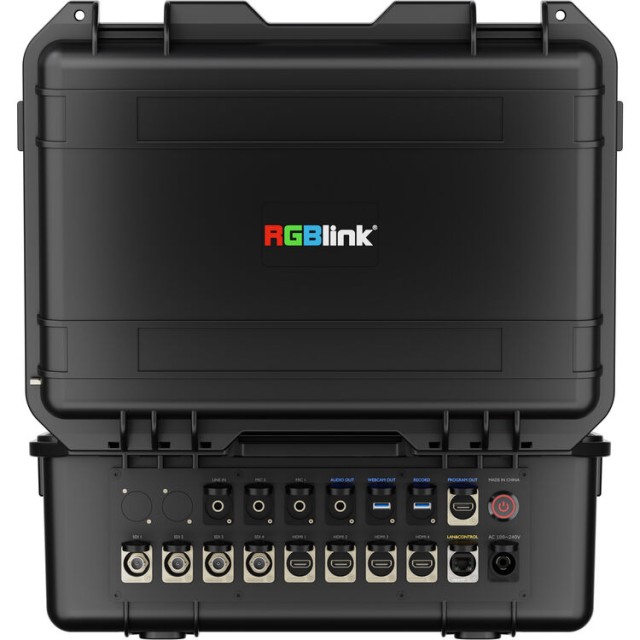 RGBlink mini-edge-4S je odolný, přenosný videopřepínač pro použití v terénu, umístěný v odolném kufru s vestavěným 14" IPS TFT monitorem, určený pro profesionální živou produkci, streamování a nahrávání. Díky čtyřem vstupům HDMI 2.0 a čtyřem vstupům 3G-SDI, podpoře nahrávání přes USB-C a webové kamery, streamování NDI|HX2 a integrovanému ovládání PTZ je ideální pro venkovní akce, vysílací pracovní postupy a mobilní produkční prostředí.