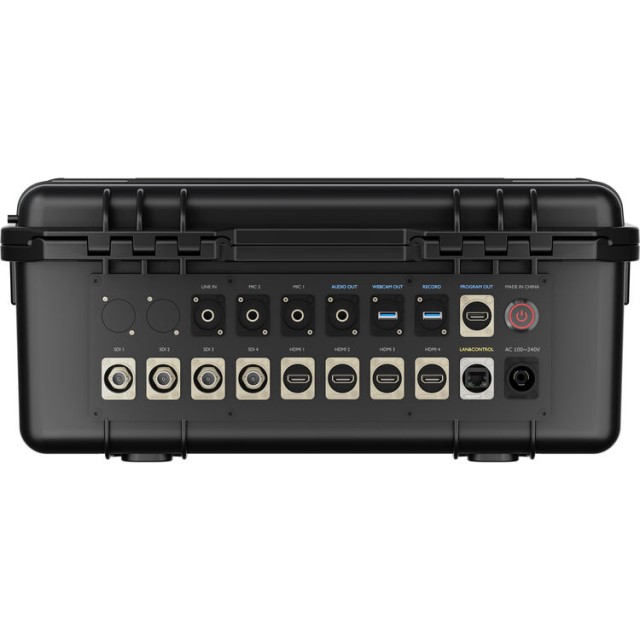 Přepínač je vybaven čtyřmi vstupy HDMI 2.0 a čtyřmi vstupy 3G-SDI, podporuje širokou škálu rozlišení až do vstupních formátů 4K, přičemž zpracování je prováděno až do rozlišení 1080p. Velký vestavěný 14" Full HD IPS TFT displej integrovaný do víka kufru poskytuje jasné sledování více obrazů, náhled a ovládání bez nutnosti externích displejů.