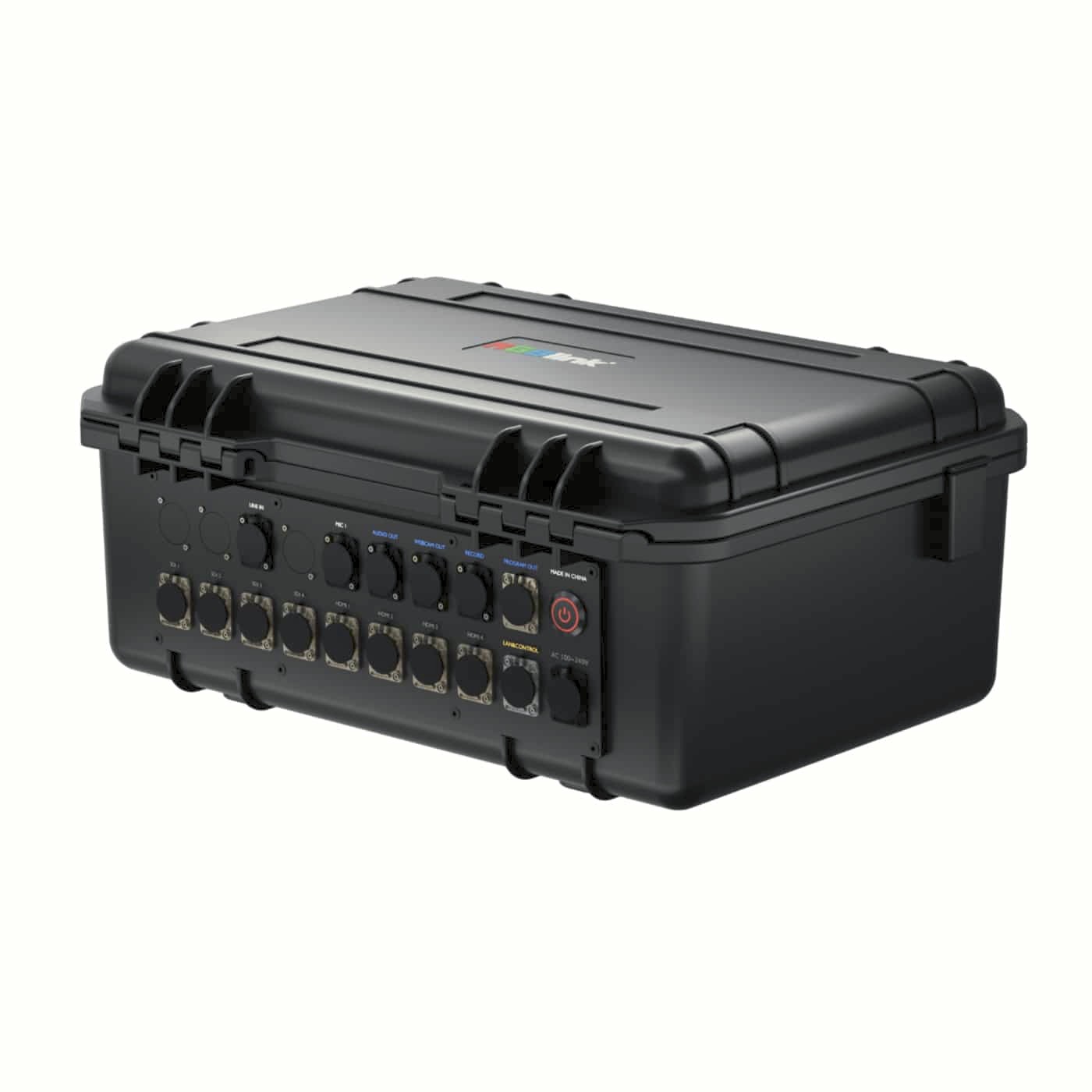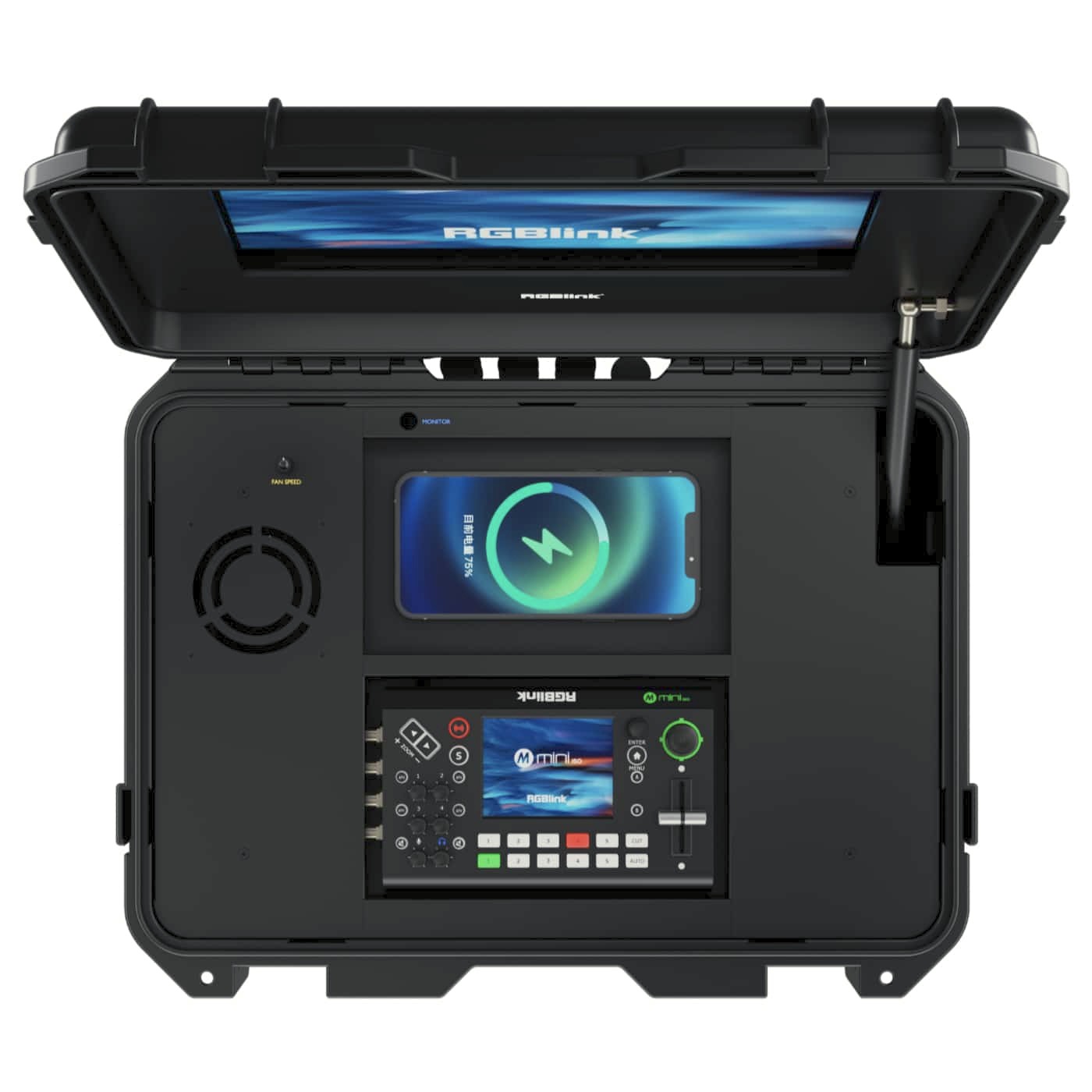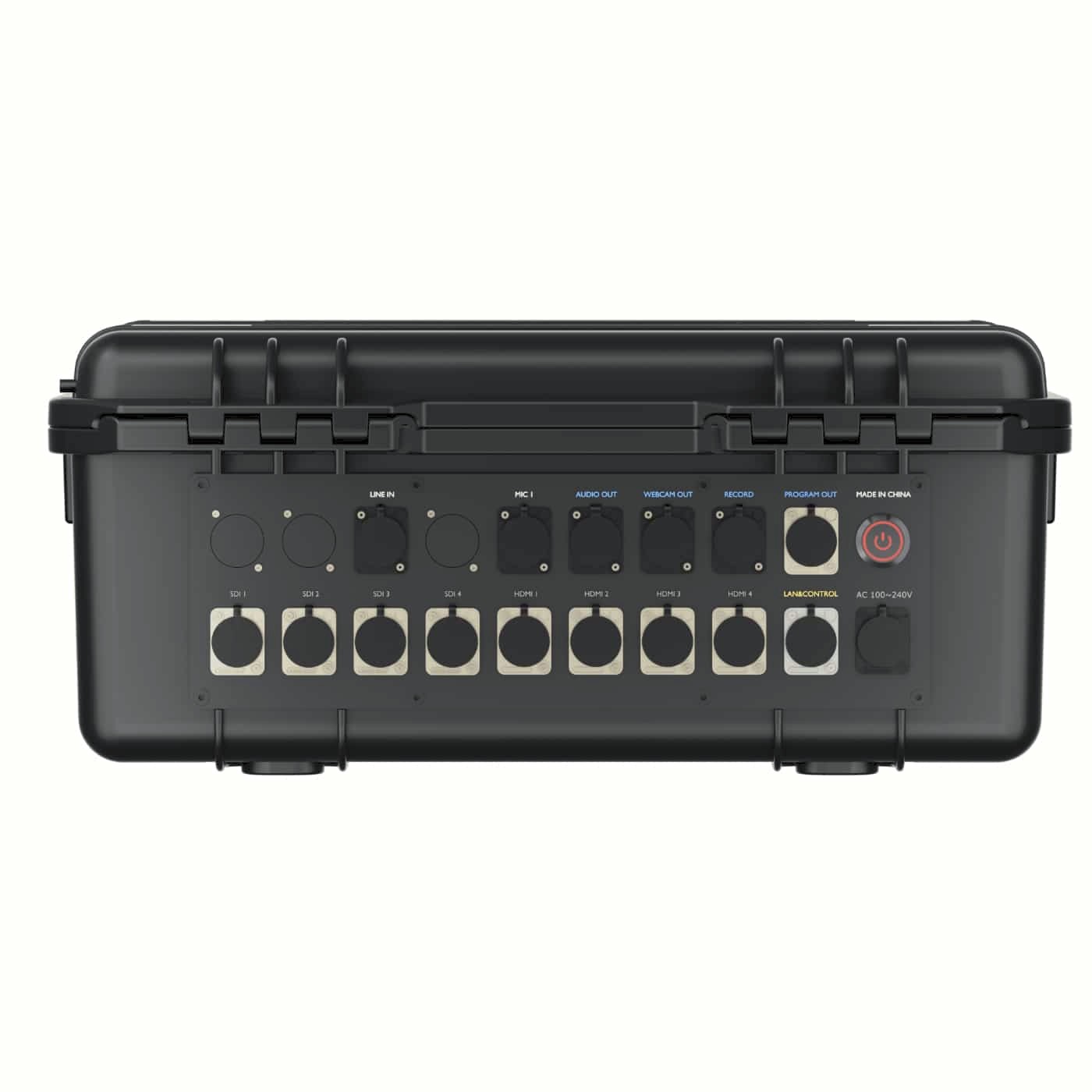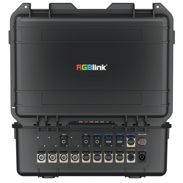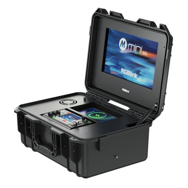 RGBlink mini-ISO 4S je univerzální all-in-one streamovací přepínač určený pro profesionální živou produkci, hybridní streamování a akce. Je umístěn v odolném ABS kufru s vestavěným 14″ HD IPS displejem a hydraulickou podporou a kombinuje přenosnost se stabilitou a dlouhodobou spolehlivostí. Přepínač nabízí celkem 10 video vstupů: 4 × 4K HDMI 2.0, 4 × SDI, plus NDI a USB UVC, spolu s duálními výstupy HDMI 1.3 pro monitorování programu a multiview. USB výstupy umožňují použití webové kamery a nahrávání MP4 až do 16 Mbps, s podporou formátů úložiště FAT32 a exFAT.