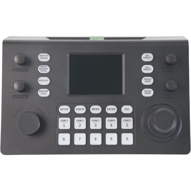 Vestavěný 3,5" LCD displej s ultra vysokým jasem 3000 cd/m² zajišťuje jasnou viditelnost jak za jasných venkovních podmínek, tak v tmavých kontrolních místnostech, a zároveň poskytuje náhled videa v reálném čase a intuitivní navigaci v menu. RGBBKT podporuje až 255 přednastavených pozic, což umožňuje rychlé vyvolání složitých pohybů kamery. Díky podpoře PoE může ovladač přijímat napájení, ovládání a video přes jediný ethernetový kabel, což zjednodušuje instalaci a snižuje množství kabelů. Jeho robustní konstrukce je ideální pro vysílací studia, živé akce, kostely, vzdělávací instituce a firemní AV aplikace.