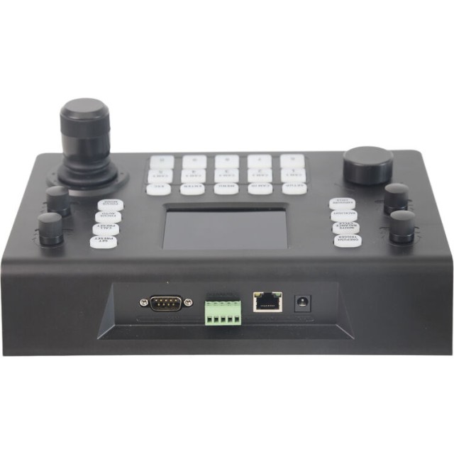 RGBlink RGBBKT je profesionální ovladač PTZ kamer určený pro přesné a efektivní ovládání velkých kamerových systémů založených na technologii NDI. Je vybaven jasným 3,5" displejem, joystickem s Hallovým efektem a speciálními ovládacími prvky pro zaostření, clonu a zoom. Umožňuje plynulý provoz až 255 kamer v reálném čase v jedné IP síti s podporou PoE.