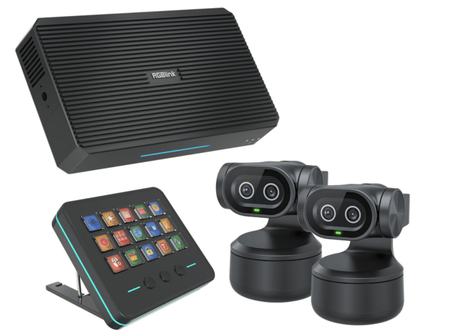 Balíček také obsahuje dvě kamery RGBlink tinyZ AI PTZ, které umožňují dynamickou, automatizovanou produkci s více kamerami. Díky vestavěnému sledování AI kamery tinyZ inteligentně sledují moderátory nebo objekty, což činí tento balíček ideálním pro učebny, konference, bohoslužebné prostory, studia a živé akce. Společně tyto komponenty podporují kompaktní, ale výkonný pracovní postup, který snižuje požadavky na personál a zároveň zachovává profesionální kvalitu produkce.