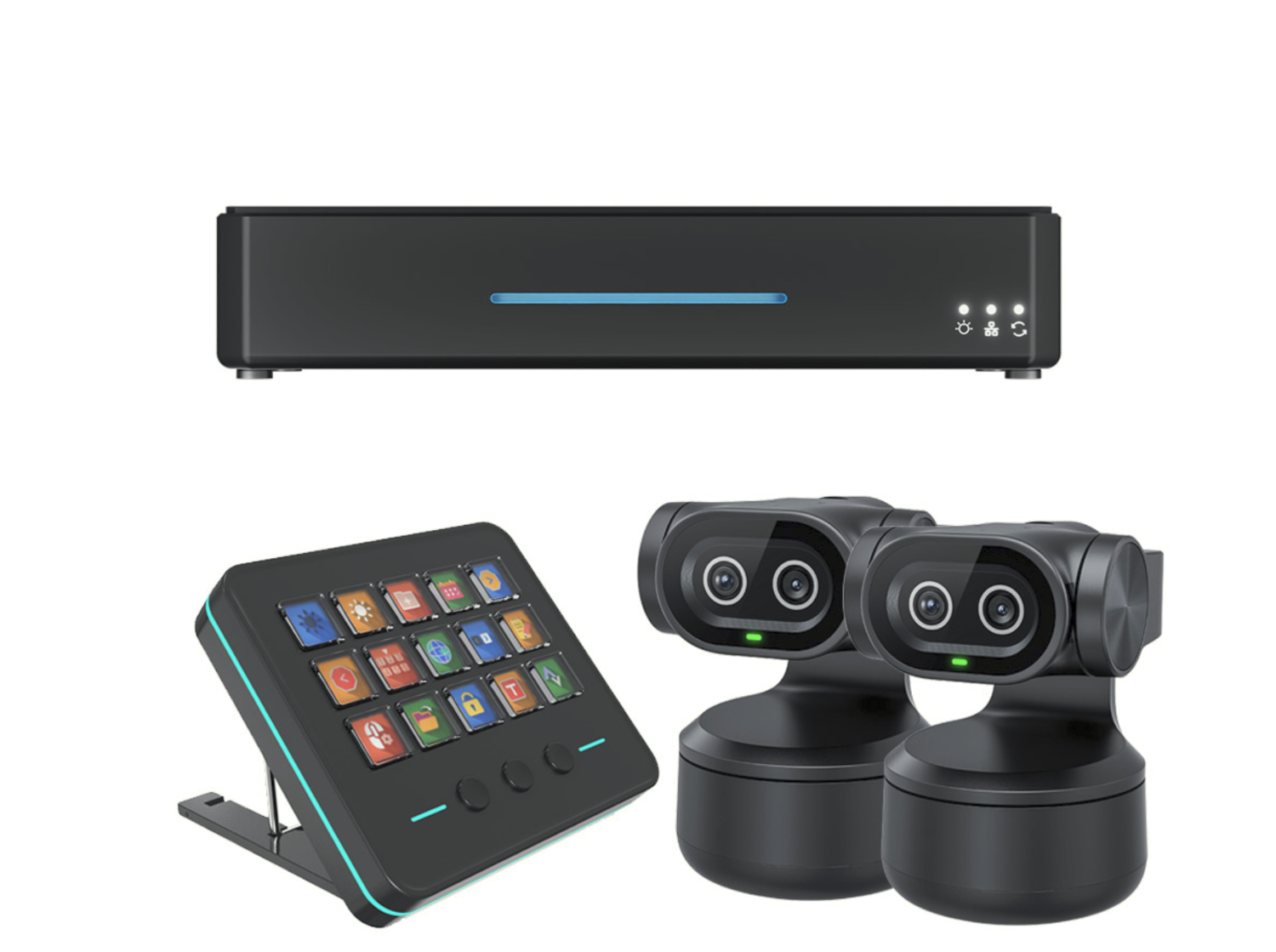 RGBlink streamZ Bundle je kompletní, připravené řešení pro živé vysílání a tvorbu obsahu, které kombinuje inteligentní streamovací hub streamZ, ovládací panel streamZ Deck a dvě kamery tinyZ AI PTZ. Tento balíček, navržený pro profesionální tvůrce, pedagogy a producenty akcí, nabízí inteligentní produkci s více kamerami, automatizaci s podporou umělé inteligence a efektivní ovládání v jednom integrovaném balíčku.