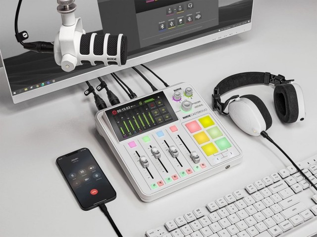 Podcastový a streamovací kompaktní studiomix, 2 analogové vstupy – mikrofon/linka/nástroj, 2x sluchátkový výstup, 1x headset vstup, výstup pro audio monitory, 2x USB-C, Wi-Fi, Ethenet, Bluetooth®, receiver pro RØDE wireless, 4 fyzické a 3 virtuální fadery, 5,5" LCD displej, procesory APHEX®, RØDE FX efekty, barevné provedení bílé