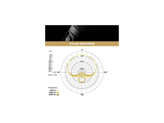 Studiový mikrofon, 1" duální membrána, typ kondenzátorový, plynule proměnná charakteristika od všesměrové přes kardioidní až po osmičku