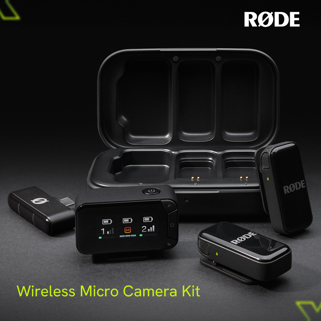 Kompaktní sada RODE Wireless Micro Camera Kit představuje kompletní bezdrátové řešení pro tvůrce obsahu, vlogery i novináře. Součástí balení jsou dva klipové vysílače s vestavěnými mikrofony, přijímač pro kameru s 1,1" AMOLED displejem a také USB-C přijímač pro mobilní zařízení.
