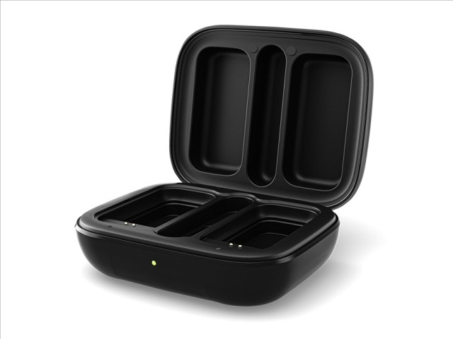 je ochranné přepravní pouzdro pro oba vysílače i přijímač. Současně funguje jako dobíjecí dok, který během dopravy nebo natáčecí pauzy zajistí dobití vysílačů. Může být napájen přibaleným USB-C kabelem, nebo pro dobíjení můžete použít interní akumulátor, který zvládne dvojí plné dobití všech komponent setu.