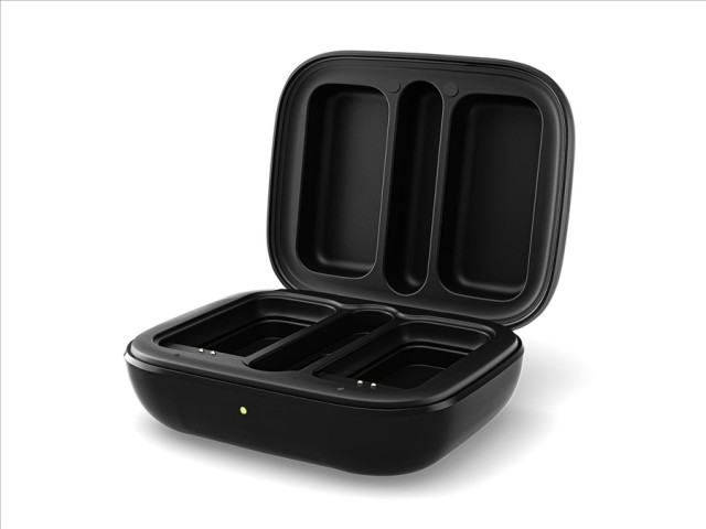 je ochranné přepravní pouzdro pro oba vysílače i přijímač. Současně funguje jako dobíjecí dok, který během dopravy nebo natáčecí pauzy zajistí dobití vysílačů. Může být napájen přibaleným USB-C kabelem, nebo pro dobíjení můžete použít interní akumulátor, který zvládne dvojí plné dobití všech komponent setu.