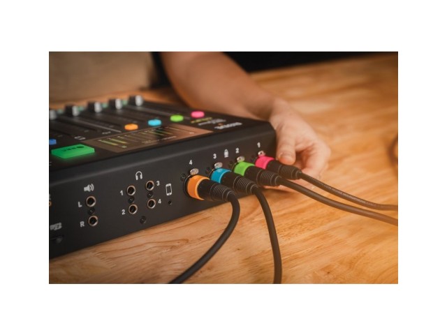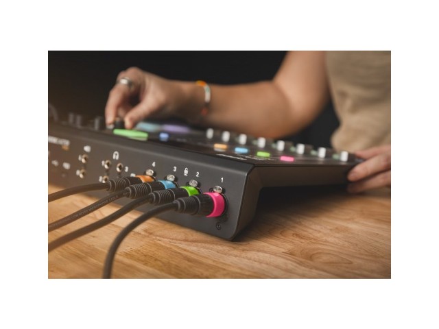 Barvy kroužků odpovídají barvám použitým u jednotlivých mikrofonních kanálů na RØDECaster Pro. Barvy kroužků odpovídají barvám použitým u jednotlivých mikrofonních kanálů na RØDECaster Pro.