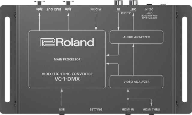 VC-1-DMX automaticky generuje řídicí příkazy pro nastavení osvětlení DMX na základě vstupů ze zdrojů videa a zvuku, čímž eliminuje potřebu specializované obsluhy osvětlení. Barva a jas se mění na základě aktuálního obrazu videa a světla a zrcadlové koule pracují synchronizovaně s tempem hudby. A pokud se chcete ponořit hlouběji, VC-1-DMX podporuje externí ovládání MIDI z hardwarových ovládacích ploch, elektronických hudebních nástrojů a počítačového produkčního softwaru.
