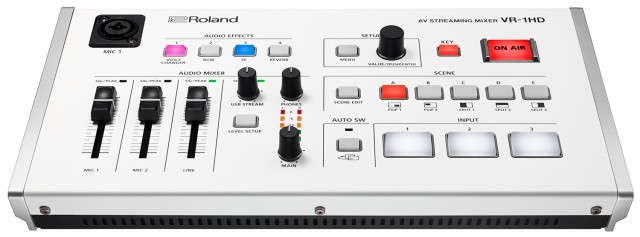 VR-1HD má tři "bezstarostné" vstupy HDMI a každý z nich přijímá různá rozlišení HD a počítačová videa. Díky tomu můžete připojovat, přepínat a streamovat různé zdroje včetně kamer, prezentací, her a dokonce i chytrých telefonů a tabletů, aniž byste na to museli myslet. Zvuk z těchto zdrojů lze smíchat se dvěma mikrofonními vstupy XLR studiové kvality a vyhrazeným linkovým vstupem. A co je nejlepší, protože je VR-1HD navržen pro živé vysílání, jeho vyhrazené ovládací prvky a mikrofonní vstup na horní straně (s mikrofonem na husím krku) vám umožní při živém vysílání používat hands-free a bez náhlavní soupravy.