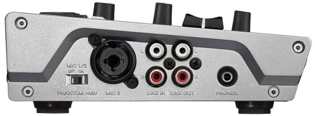 - MIC IN 1-2: Combo XLR/1/4" TRS (fantomové napájení DC 48 V, max. 10 mA)