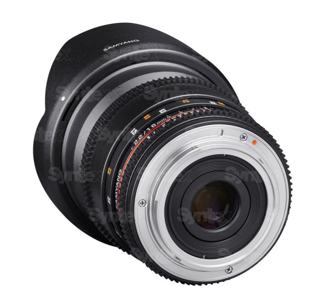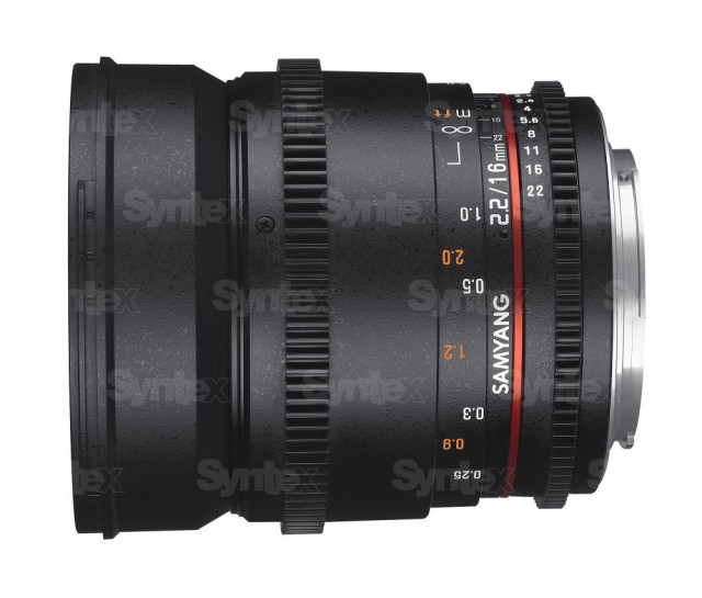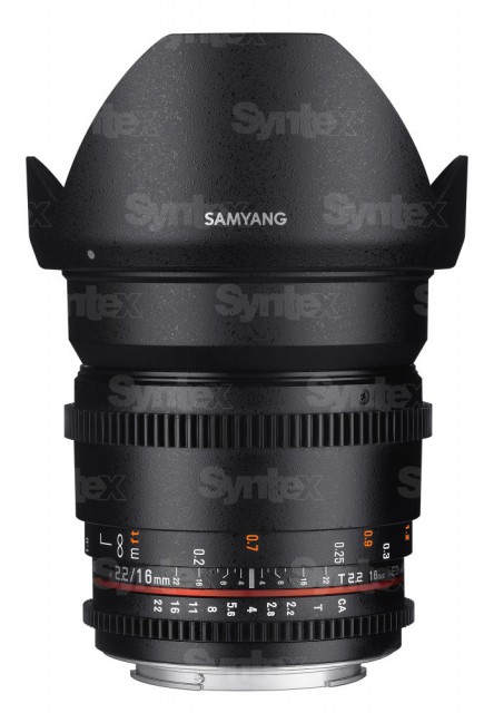 ObjektivSamyang16mm T2.2 VDSLR II Canonje širokoúhlý manuální videoobjektiv určený pro fotoaparáty se snímačem APS-C. Byl vyvinut pro potřeby profesionálních filmů a zaujme vysokou světelností a vynikající ostrostí