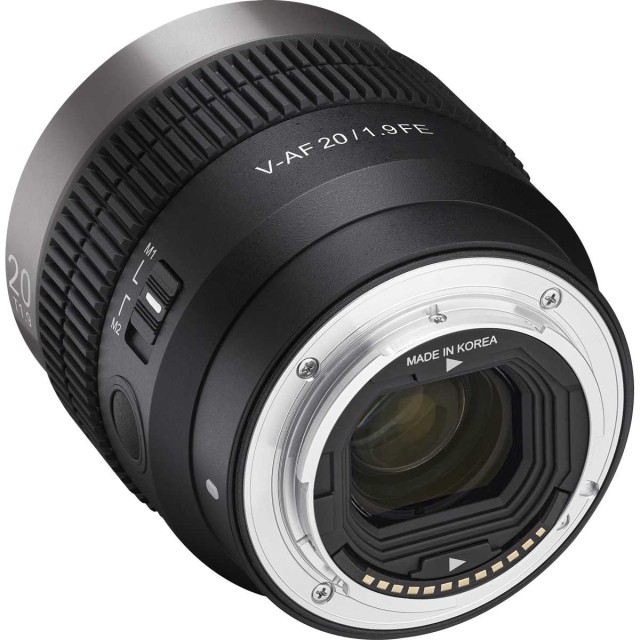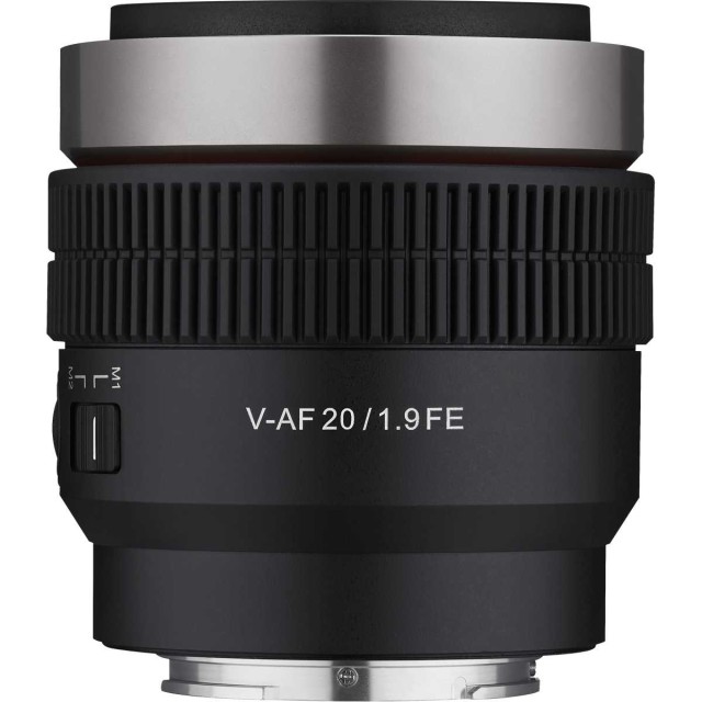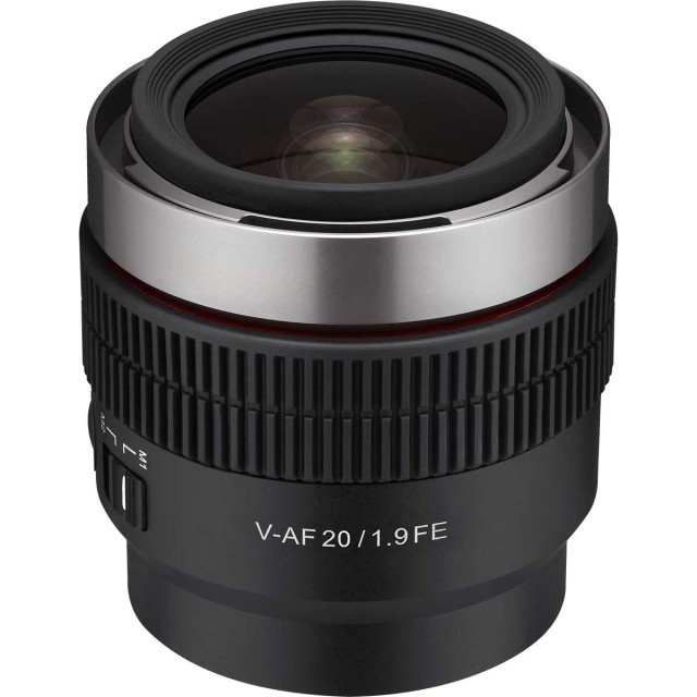 Řada filmových AF objektivů Samyang V-AF se soustředí na vysokou obrazovou kvalitu při minimalizaci rozměrů a hmotnosti těla (<300 g) pro maximálně snadné použití s kamerovými stabilizátory a drony. Řada nabízí několik různých pevných ohnisek (20, 24, 35, 45, 75, 100) se stejnými rozměry i sladěnou barevností, ozubeným ostřícím prstencem, a také clonou s 9 lamelami pro přirozené podání obrazu mimo hloubku ostrosti. Z řady mírně vybočuje model 100mm T2.3 FE délkou a světelností T/2,3. Objektivy Samyang V-AF poskytují velmi dobré optické rozlišení vhodné pro přístroje s až 4K a 8K snímači; zajímavostí je rovněž dvojice LED signalizujících běžící záznam, což dále usnadní použití objektivů na stabilizátorech apod. Tlačítko „Focus Save“ slouží k uzamčení nastavení zaostření během AF provozu, integrovaný přepínač „Custom Switch“ pak může sloužit např. k přepnutí funkce prstence z ostření na nastavení clony v režimu AF. 20mm varianta v prodeji od 5/2024.