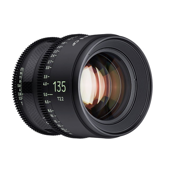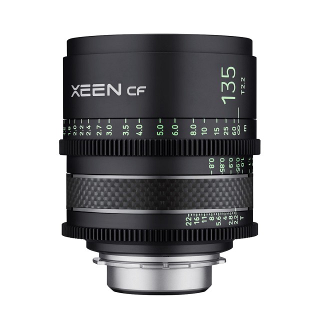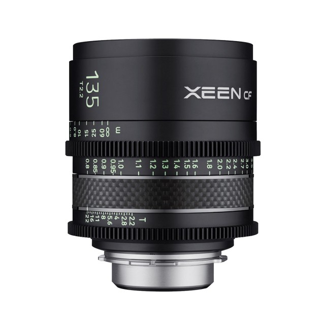 Manuální, filmový objektiv Samyang Xeen CF 135mm T2.2 nabízí vysoké optické rozlišení (pro moderní 4K/6K/8K FF snímače), konstrukci využívající karbonové prvky pro nižší váhu při zachování vysoké pevnosti, ozubené prstence clony a ostření (rozsah 200°), povrchovou úpravu X-Coating pro potlačení odlesků a snadno čitelné, luminiscenční značky. Vyrábí se ve variantách EF, FE a PL.