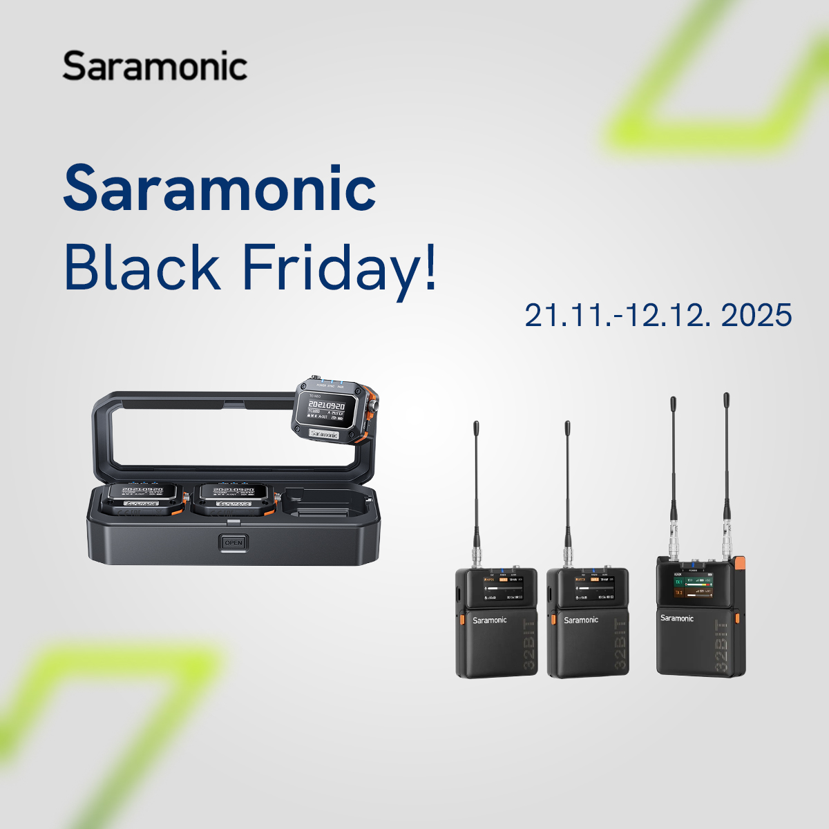 Přinášíme vám Black Friday značky Saramonic! Pokud hledáte spolehlivé audio řešení pro natáčení, rozhovory, livestreamy nebo týmovou komunikaci, teď je ideální příležitost. Od 21. listopadu do 12. prosince 2025 u nás můžete pořídit oblíbené bezdrátové mikrofonní a interkomové systémy nebo bezdrátový generátor timecodu za zvýhodněné ceny.