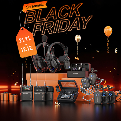 Objevte Black Friday slevy značky Saramonic! Od 21. 11. do 12. 12. 2025 pořídíte bezdrátové mikrofony, interkomové systémy i generátor timecodu za zvýhodněné ceny. Dopřejte svým projektům čistý a profesionální zvuk – akce trvá jen omezenou dobu.
