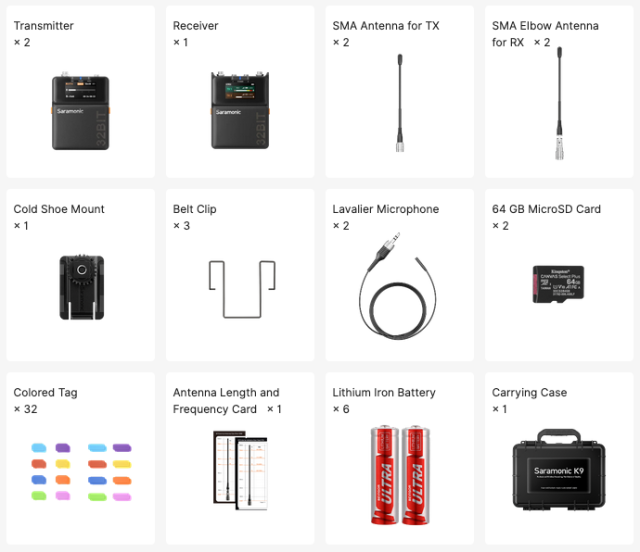 Saramonic K9 je dvoukanálový digitální bezdrátový audio systém UHF určený pro profesionální filmovou produkci. Disponuje 32bitovým float záznamem, přesnou synchronizací časového kódu a širokým dynamickým rozsahem pro výjimečnou kvalitu zvuku. Systém zahrnuje odolné miniaturní klopové mikrofony a nabízí stabilní výkon odolný proti rušení.