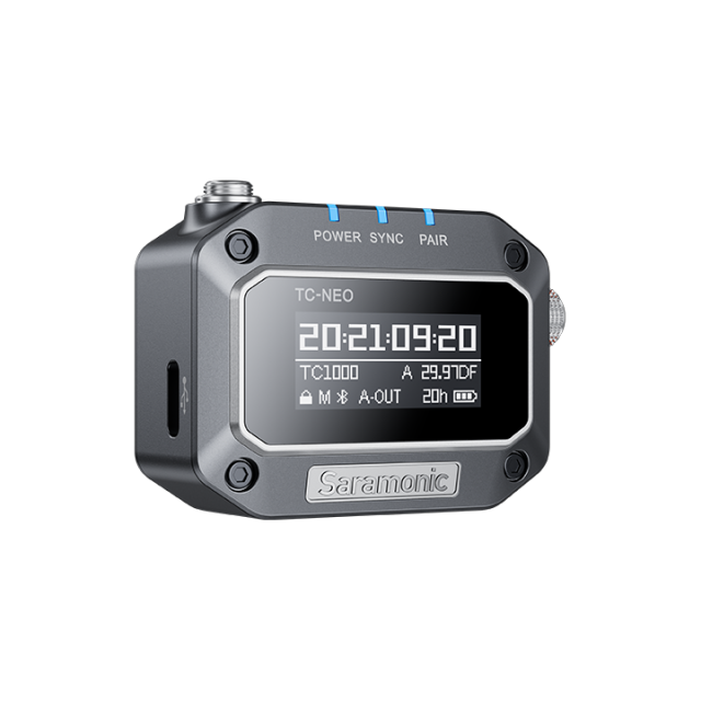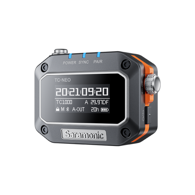 Saramonic TC-NEO je profesionální bezdrátový generátor časového kódu navržený pro přesnou a spolehlivou synchronizaci. Je vybaven vysoce přesným TCXO s přesností ±0,5 ppm pro minimální odchylku, několika způsoby synchronizace včetně Bluetooth a 2,4 GHz a dlouhou výdrží baterie 22 hodin pro celodenní natáčení.