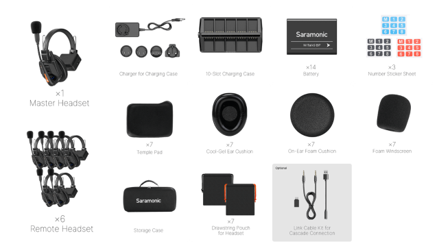 Saramonic WiTalk9 WT7S je bezkoncentrátorový bezdrátový interkomový systém pro 9 osob s plně duplexním provozem, navržený pro plynulou týmovou komunikaci. Tato sada obsahuje jednu hlavní a čtyři vzdálené náhlavní soupravy, které umožňují hands-free provoz a dosah až 500 m. Díky technologii ClearTalk™ pro potlačení šumu a technologii DECT zajišťuje křišťálově čistou, bezpečnou a spolehlivou komunikaci i v hlučném prostředí.