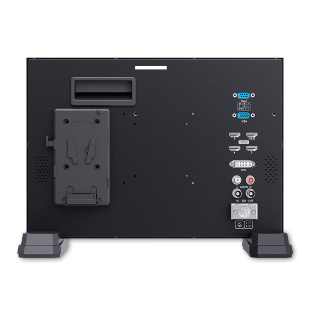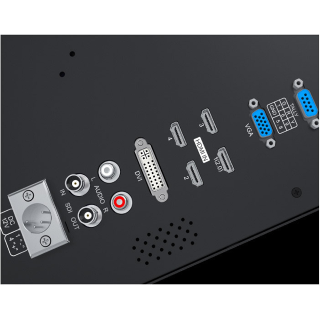 Špičkový režijní monitor s 15,6 IPC LCD panelem (3840x2160, 16:9, 300 cd/m², pozorovací úhly 170°) a 1x SDI, 4x HDMI, DVI, VGA i audio (L/R) vstupy. Díky integrovaným funkcím Quad View/Picture in Picture a 1xSDI/4xHDMI vstupům je možné realizovat náhled z až 4 zdrojů (SD, HD-SDI, 3G-SDI a 4K HDMI 2160p) videa najednou! Monitor nabízí také signalizační světlo, SDI výstup, integrovaný reproduktor, sluchátkový výstup, bateriovou destičku pro akumulátory V-Mount (volitelně Gold Mount), napájecí vstup s konektorem XLR4, a robustní hliníkový rámeček. Samozřejmostí jsou funkce pro asistenci ostření, zoom, Pixel-to-Pixel, otočení obrazu, kontrolu půlsnímků apod.