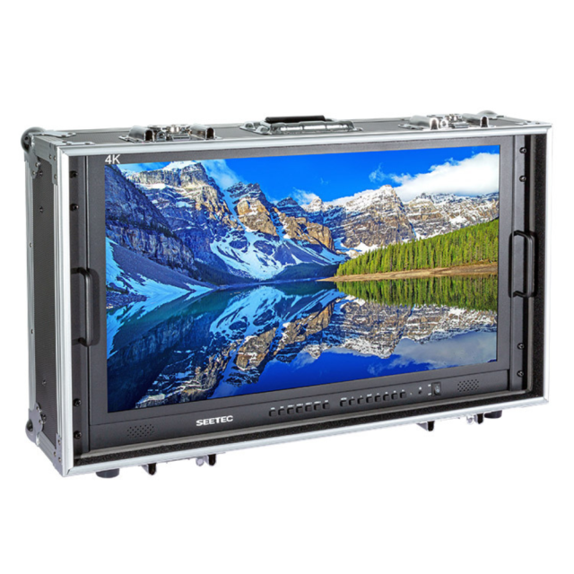 4K přenosný 28" monitor v kufříku (vč. skládací sluneční clony) specificky navržený pro živou produkci mimo studio.