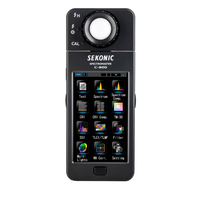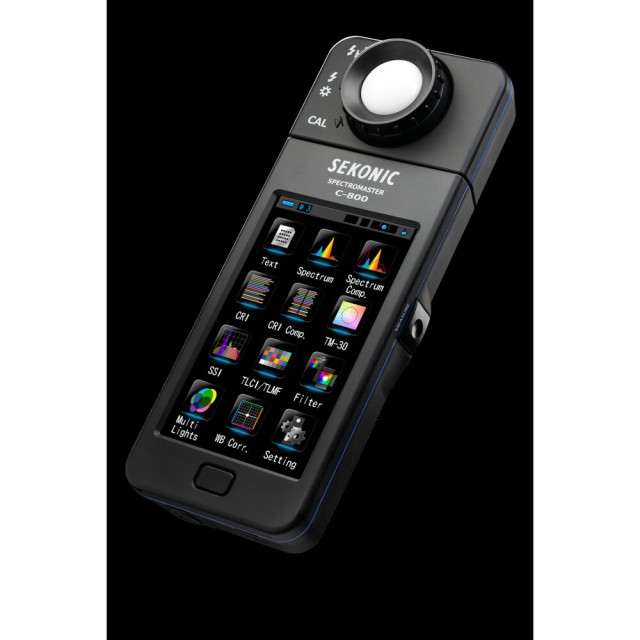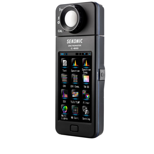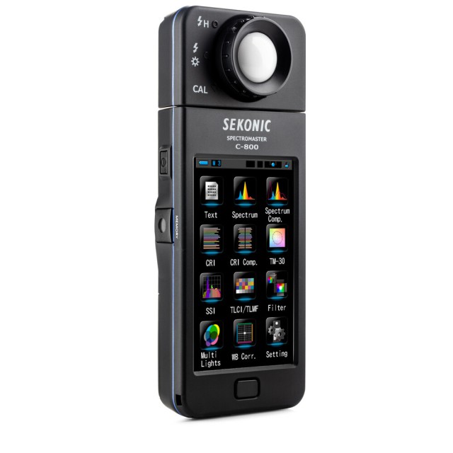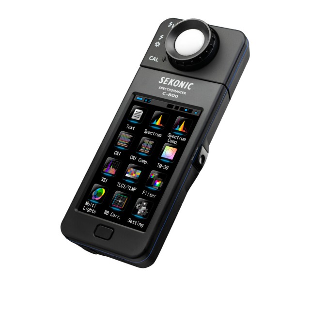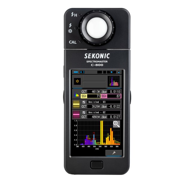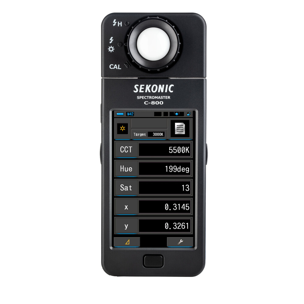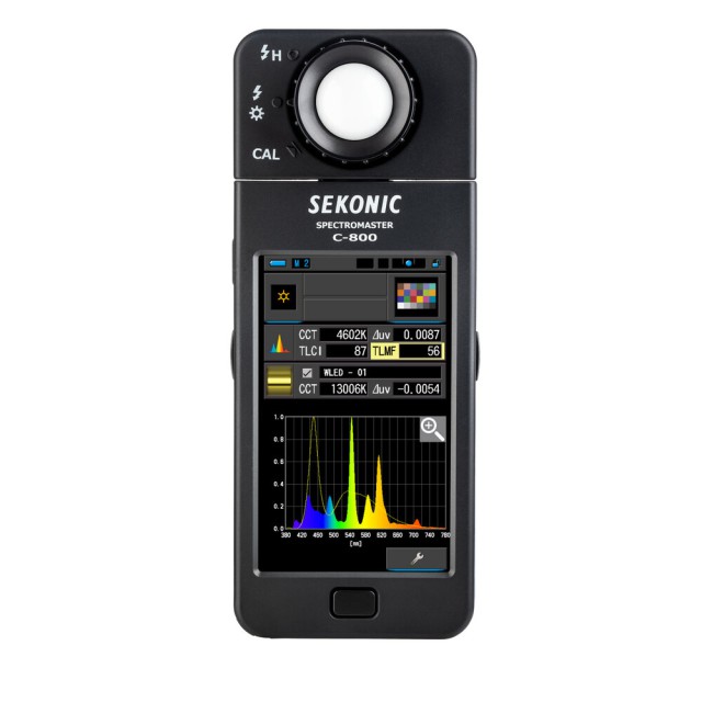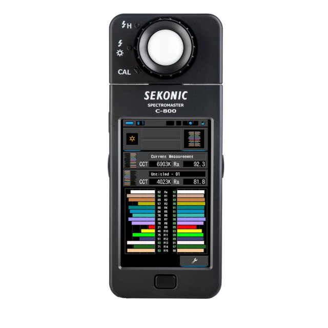 Barevný měřič C-800 SpectroMaster od společnosti Sekonic je pokročilý terénní měřičurčenýpro fotografy, kameramany, kameramany a pracovníky v oblasti gaffingu , který dokáže snímat prakticky všechny zdroje světla, ať už se jedná o LED, blesk, žárovku, HMI, zářivku nebo přirozené světelné spektrum. A co je nejdůležitější, je to praktický nástroj pro osvětlování, který analyzuje světelný zdroj pomocí 11 různých režimů zobrazení na svém 4,3" barevném dotykovém displeji a konkrétně ukazuje, co je třeba udělat, abyste dosáhli požadovaného efektu. Snímač CMOS měřiče umožňuje měření s přesností na 1 nm a umožňuje zachytit barevné skoky ve světelném výstupu - což je obzvláště cenná funkce při práci s LED, HMI, zářivkovým osvětlením a smíšenými zdroji.