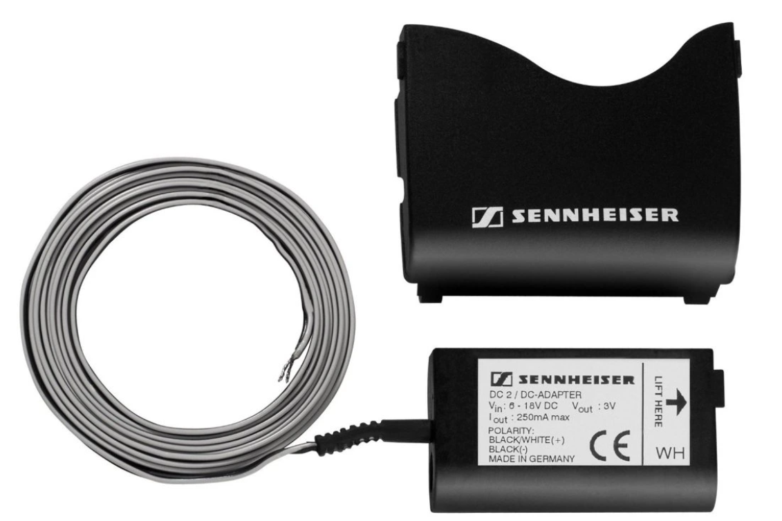 Sennheiser DC 2 je napájecí adaptér určený k napájení přenosných vysílačů a přijímačů, včetně systémů Evolution Wireless G2/G3/G4 a Series 2000, externím stejnosměrným proudem (8–18 V). Ideální pro dlouhodobý provoz nebo napájení kamerových přijímačů přímo z kamery.