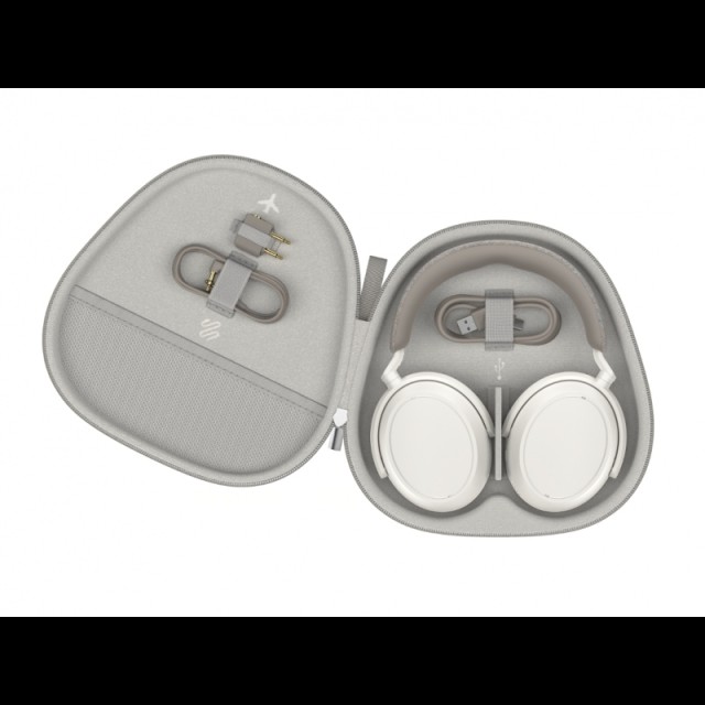 Ovládání a nastavení zvuku probíhá přes intuitivní dotykové plochy a mobilní aplikaci, kde lze upravit ekvalizér, ANC či uložit profily pro různá prostředí. V balení najdete elegantní pouzdro, USB-C nabíjecí kabel, 3,5 mm audio kabel a adaptér do letadla.