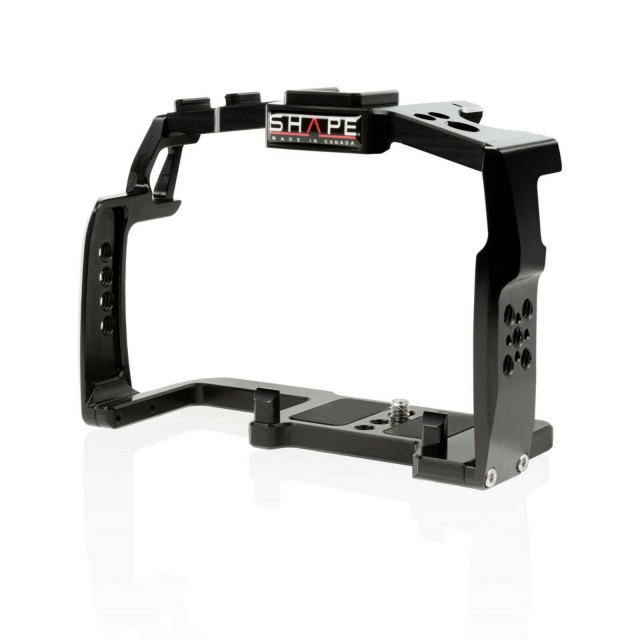 Klec pro fotoaparát Panasonic GH5 od společnosti SHAPE je tvarově přizpůsobená, lehká a robustní klec zkonstruovaná a navržená pro ochranu fotoaparátu Panasonic LUMIX GH5. Bezpečně obepíná tělo fotoaparátu, zabraňuje nežádoucímu otáčení a zároveň poskytuje množství závitů 1/4″-20 a 3/8″-16 pro příslušenství. Fotoaparát je ke kleci připevněn šroubem 1/4″-20 pod jednotkou; a pozice je zajištěna zadní stranou a boky klece, takže se při osazení těžkým objektivem nepohne dopředu. Klec umožňuje rychlý a snadný přístup k tlačítku pro uvolnění objektivu, bateriovému prostoru a paměťové kartě. Na horní straně má otevřený přístup pro upevnění příslušenství na elektronickou horkou patici fotoaparátu GH5. Druhá vestavěná patice na boku nabízí další místo pro upevnění příslušenství. Klec pro fotoaparát Panasonic GH5 je navržena tak, aby byla kompatibilní se zámkem chrániče kabelu HDMI plné velikosti na boční straně, a zajistila tak používání kabelu HDMI 4K.