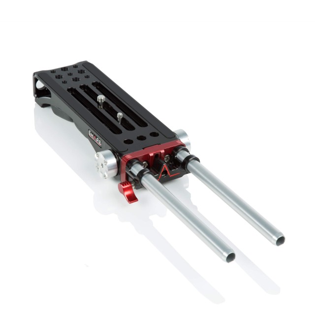 Ramenní podložka se upevňuje pomocí dotykových uzávěrů. Závity pro upevnění na stativ se nacházejí pod ramenní podložkou. Součástí dodávky je jeden pár 15mm 8″ tyčí pro přední část. Pro připevnění matte-boxu a dalšího příslušenství lze adaptér tyčí vertikálně nastavit, pokud odstraníte šroub, který jej drží na místě. Tato základní deska podporuje také volitelné adaptéry SHAPE 15 mm Studio a 19 mm Studio, které nahrazují dodaný adaptér. Základní deska je vybavena třemi otvory pro upevnění fotoaparátu, které podporují šrouby 1/4″-20 a 3/8″-16. Drážky mimo střed umožňují namontovat kameru posunutou, pokud použijete adaptér Studio 15 mm. Za třemi sloty je rozmístěno více montážních závitů 1/4″-20 a 3/8″-16 pro upevnění kloubových ramen a dalšího příslušenství. Součástí balení jsou dva šrouby 1/4″-20 a dva šrouby 3/8″-16 pro upevnění fotoaparátu.