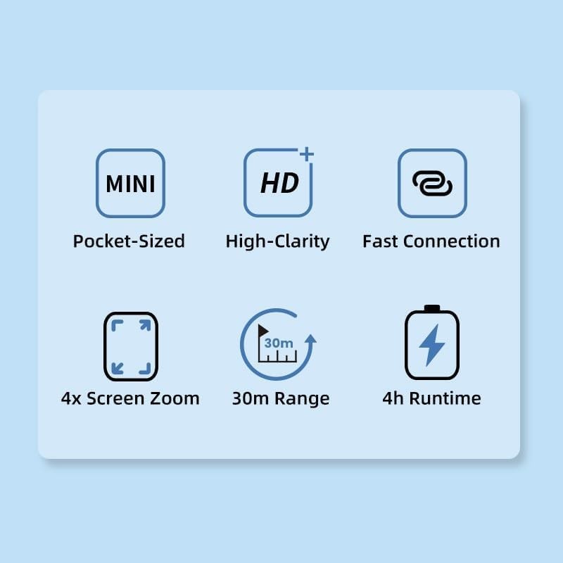 Shimbol CP5 Mini2 Pink umožňuje plynulé bezdrátové monitorování přes 2,4G/5G a okamžitou synchronizaci s vaším iPhonem. 2,4palcový HD displej (rozlišení 480 × 800) poskytuje ostrý obraz a funkce inteligentního zoomu zvětšuje zobrazení při zachování původního poměru stran. Jeho ultrakompaktní design o hmotnosti 60 g zajišťuje minimální rušení při natáčení, což je ideální pro vlogování, cestování a selfie.