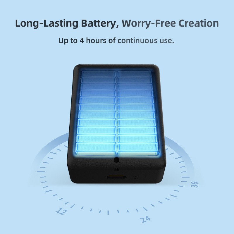 Ovládání spouště přes Bluetooth umožňuje dálkové ovládání iPhone z vzdálenosti až 30 metrů a baterie s kapacitou 1200 mAh poskytuje 4 hodiny nepřetržitého používání. Magnetické uchycení usnadňuje připevnění ke stativům, držákům nebo jiným kreativním sestavám. Nízká latence 60 ms zajišťuje plynulé sledování videa.