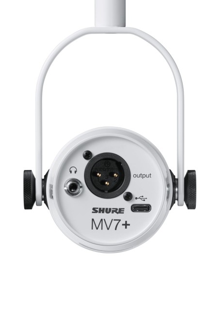 MV7+ je dynamický mikrofon značky Shure umožňující jak analogové XLR připojení, tak přímou digitální konverzi pomocí USB rozhraní. MV7+ je oproti původní verzi vylepšený přizpůsobitelným dotykovým LED panelem, výkonnými funkcemi DSP a ještě lepším zvukem. Mikrofon je určen pro náročné podcastery, streamery a hudebníky, přímý monitoring zajišťuje vestavěný sluchátkový výstup. Režim Auto Level upravuje zisk mikrofonu na základě vzdálenosti, hlasitosti a prostorové detekce pro optimalizované úrovně zvuku. Nový Digital Popper Stopper™ odstraňuje drsné výbušné zvuky, takže se lze vyhnout akustickému rozptýlení ve zvukových stopách a fyzickému pop filtru na kameře při natáčení.