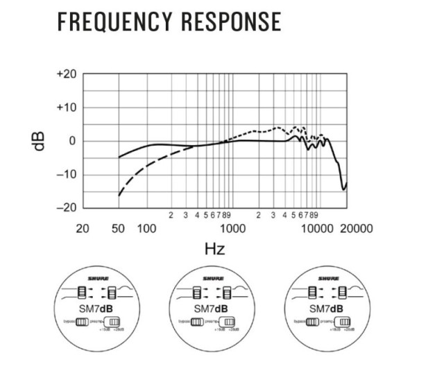 SM7dB je dynamický zpěvový mikrofon od výrobce Shure.Vestavěný předzesilovač poskytuje až +28dB transparentního gainu. Mikrofon disponuje přirozeným teplým a jemným zvukem, který se uplatní zejména při nahrávání vokálů a mluveného slova. Čistou a konzistentní reprodukci zvuku zajišťuje protivětrný kryt a vnitřní upevnění shock mountu. Vynikající potlačení elektromagnetického brumu, optimalizované pro stínění proti širokopásmovému rušení vyzařovanému počítačovými monitory napomáhá excelentní zvukové kvalitě.