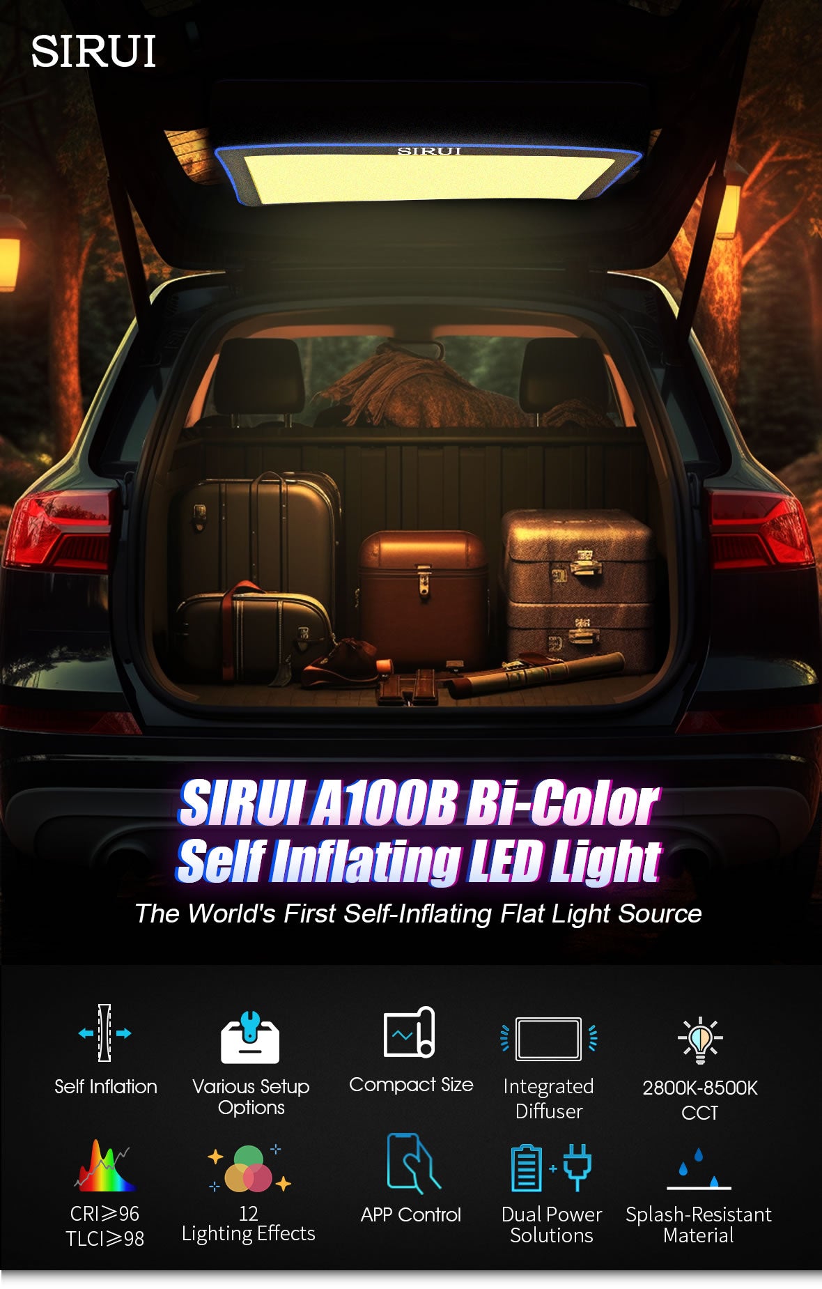 Toto nové světlo od společnosti SIRUI kombinuje výhody nafukovacích světel s látkovými světly. Díky samonafukování, štíhlému tělu, různým možnostem nastavení a relativně kompaktním rozměrům je považováno za ideální řešení osvětlení pro případy, jako jsou stísněné prostory, živé vysílání, rozhovory, venkovní fotografování, portrétování, fotografování produktů a fotografování z ruky.