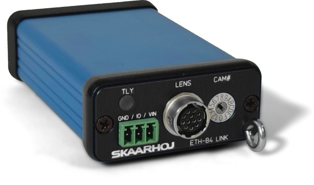 ETH-B4 Link usnadňuje síťové připojení analogových vysílacích objektivů B4 s konektorem Hirose-12 a umožňuje ovládání objektivu přes Ethernet. Díky využití jader zařízení SKAARHOJ mohou operátoři přesně ovládat clonu objektivů B4 a přistupovat k vyhrazenému kanálu tally. Toto zařízení vyniká svou neuvěřitelně lehkou a kompaktní formou a nabízí jedinečné řešení, kde jsou data pro ovládání clony přenášena odděleně od signálů pro ovládání kamery. Mezi jeho funkce patří přepínač kamery pro konfiguraci ID a IP, analogový výstup přes konektor Hirose-12 a dvoubarevná kontrolka tally spolu s reléovým výstupem pro signály programového tally, což zajišťuje komplexní ovládání.